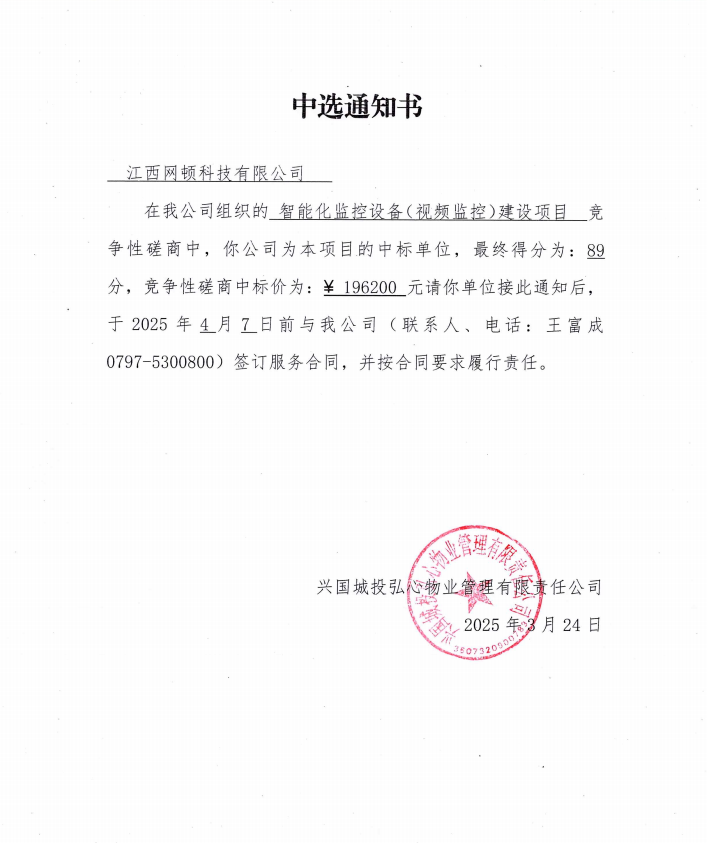 關于興國城投弘心物業管理有限責任公司2025年保潔用品、保潔開荒服務、辦公用品等采購項目的成交結果公告